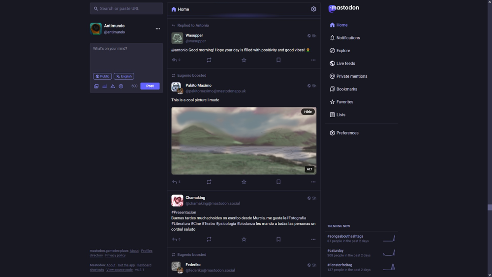 - Pas d’algorithme manipulateur : Un point clé de Mastodon est l’absence d’algorithme de recommandation dans le fil d’actualité. Les publications des personnes que vous suivez s’affichent dans l’ordre chronologique pur, sans filtrage opaque ni intercalage de contenus sponsorisés ou de suggestions invasives. Vous ne verrez que ce à quoi vous êtes volontairement abonné. « Vous savez mieux que quiconque ce que vous voulez voir sur votre fil principal. Personne ne veut d’un algorithme ou de publicité qui décide à notre place et nous fait perdre notre temps », explique Mastodon sur sa page d’accueil. Cette approche « retour aux sources » procure un sentiment de contrôle accru : finis les flux interminables dictés par l’IA pour capter votre attention. Sur Mastodon, vous paramétrez vous-même votre expérience en choisissant qui suivre, en utilisant éventuellement des listes ou des hashtags pour organiser le contenu. Cela peut sembler déroutant quand on a l’habitude d’être guidé par les suggestions (nous y reviendrons dans les défis), mais beaucoup y voient un soulagement : on reprend la main sur son fil.