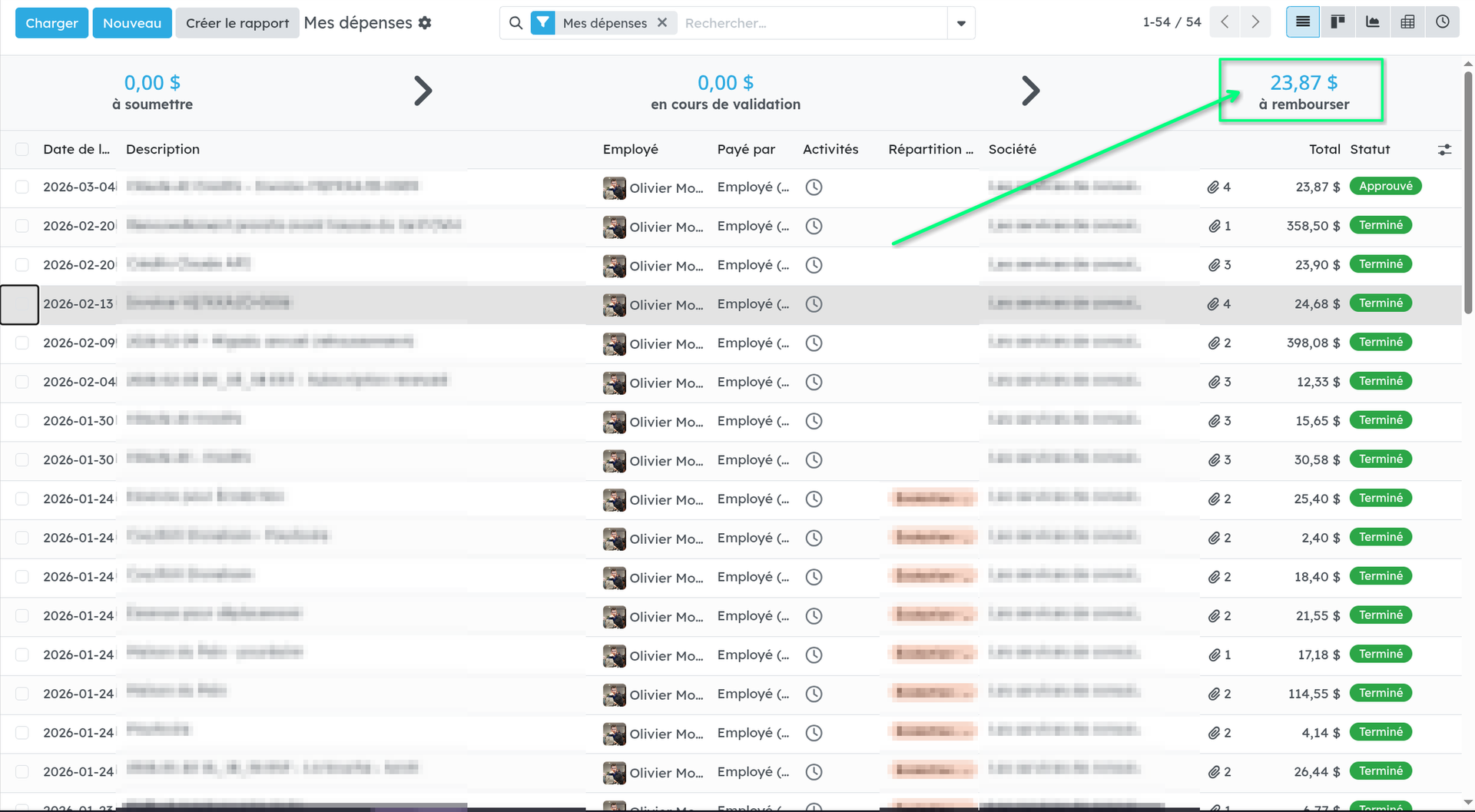 Les employés soumettent leurs dépenses avec reçus, le gestionnaire approuve en un clic, et tout se reflète automatiquement en comptabilité.