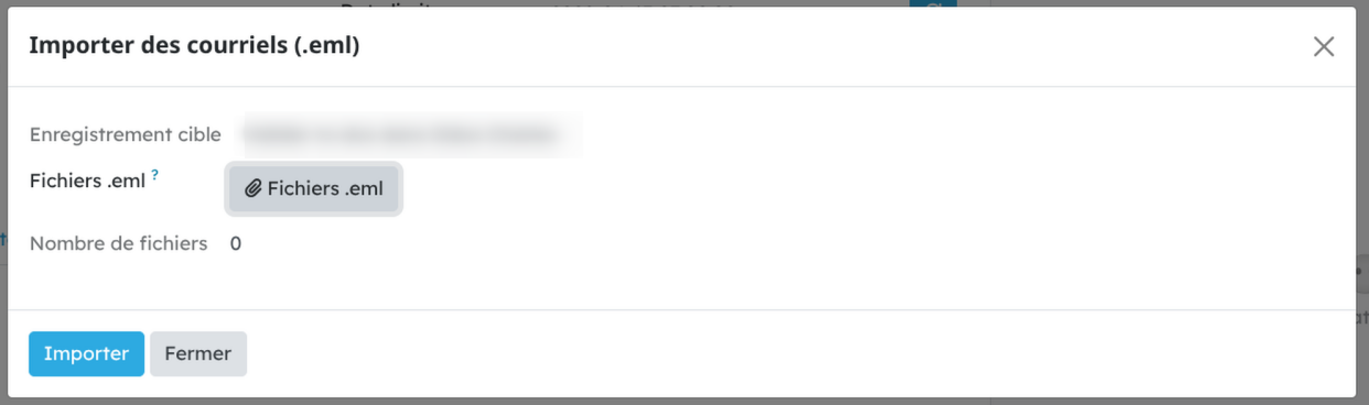 Bouton dans le fil de discussion (chatter) des documents Odoo : on dépose un ou plusieurs fichiers .eml, et ils s'intègrent dans l'historique comme s'ils étaient arrivés via Odoo. Tri chronologique avant import, déduplication par Message-ID, résolution automatique de l'auteur, threading par In-Reply-To. Pratique pour reconstituer l'historique d'un dossier quand les courriels initiaux sont arrivés ailleurs que dans l'ERP.