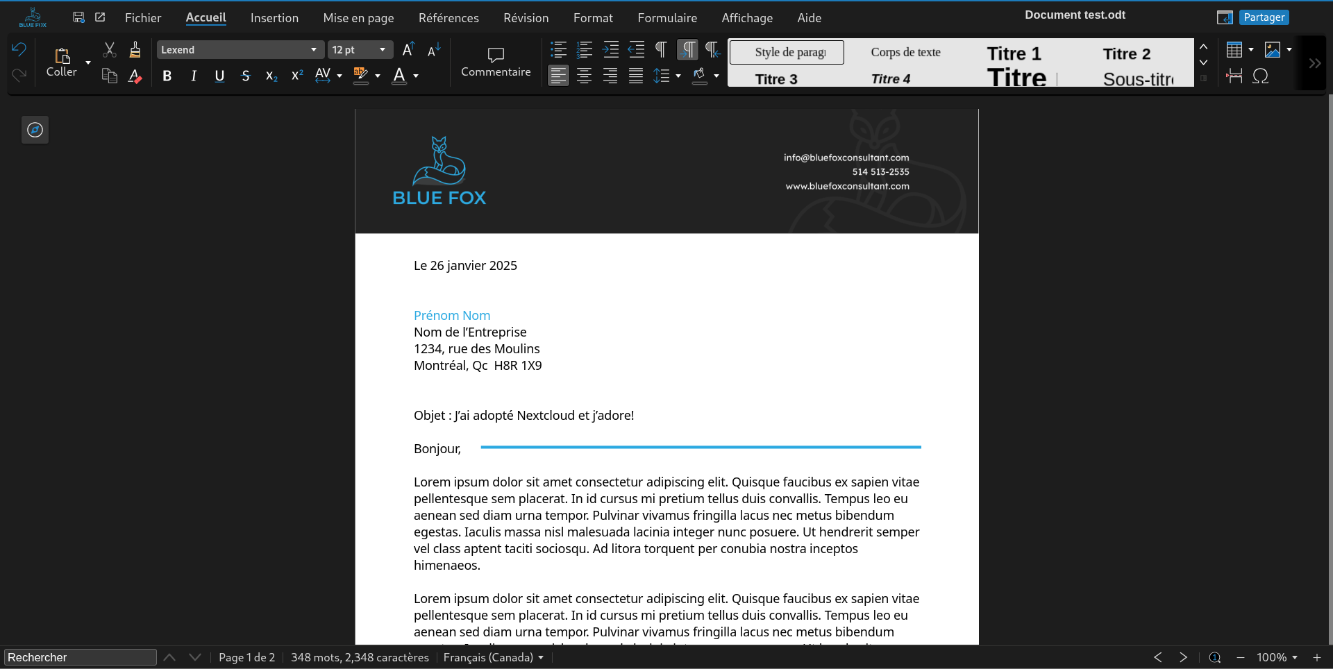 - Édition de documents en ligne : Pour remplacer Google Docs ou Office 365 en ligne, Nextcloud intègre Nextcloud Office, une suite bureautique collaborative basée sur LibreOffice en ligne. Couplé à des solutions partenaires comme Collabora Online ou OnlyOffice, Nextcloud Office permet d’éditer à plusieurs des documents texte, feuilles de calcul ou présentations, directement depuis un navigateur web. La compatibilité avec les formats MS Office est assurée : lancée fin 2021, Nextcloud Office a apporté une compatibilité avancée avec les formats bureautiques propriétaires pour faciliter la transition. L’interface d’édition est familière (barre d’outils type Office) et chacun peut voir en temps réel les modifications des autres, avec un historique des versions en cas de besoin. Vos collaborateurs peuvent donc coéditer un rapport ou un tableur simultanément, sans envoyer de pièces jointes dans tous les sens. Tout se passe sur votre serveur, ce qui garantit que aucune donnée sensible n’est confiée à un service tiers pendant l’édition.