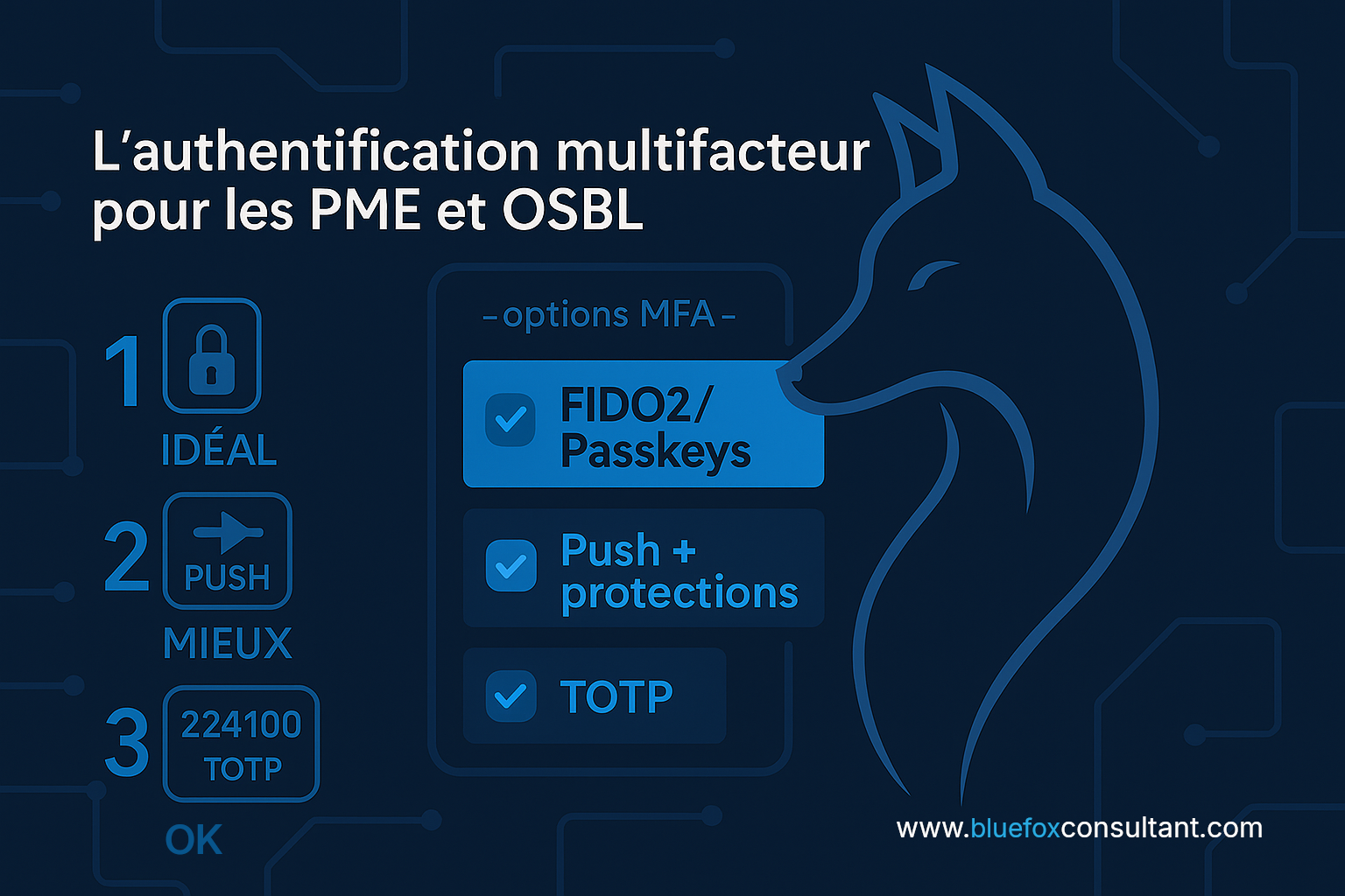 #CyberSécurité #MFA #FIDO2 #Passkeys #ZeroTrust #Phishing #SécuritéEntreprise #BlueFox